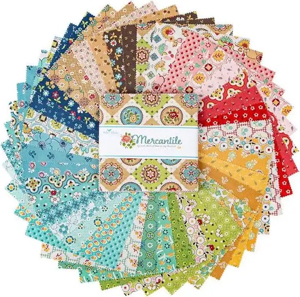 A delightful mix of vintage-inspired elements including colorful geometric patterns, cheerful motivational phrases, and quaint illustrations of daily life. Designed by Lori Holt for Riley Blake.